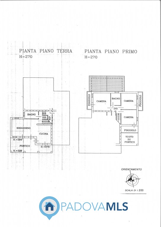 - porzione grande di ca. 200 mq comm., composta da: P.T. con ingresso, soggiorno, cucina, disimpegno, 1 bagno finestrato, 1 ripostiglio, garage e portico ideale per pranzi e cene all'aria aperta; P.1° con 3 camere (1 matrimoniale e 2 doppie), disimpegno, 1 bagno finestrato e 3 poggioli.